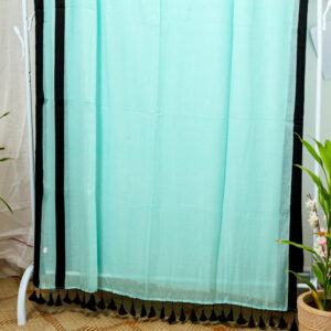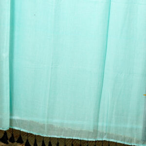 Embrace effortless elegance with our Ethereal Aquamarine Saree. Handcrafted from premium, lightweight Bengali cotton, this saree is designed for the modern woman who values both comfort and a bold aesthetic. The striking turquoise body is beautifully grounded by a minimalist black border and playful, hand-knotted tassels along the pallu.
